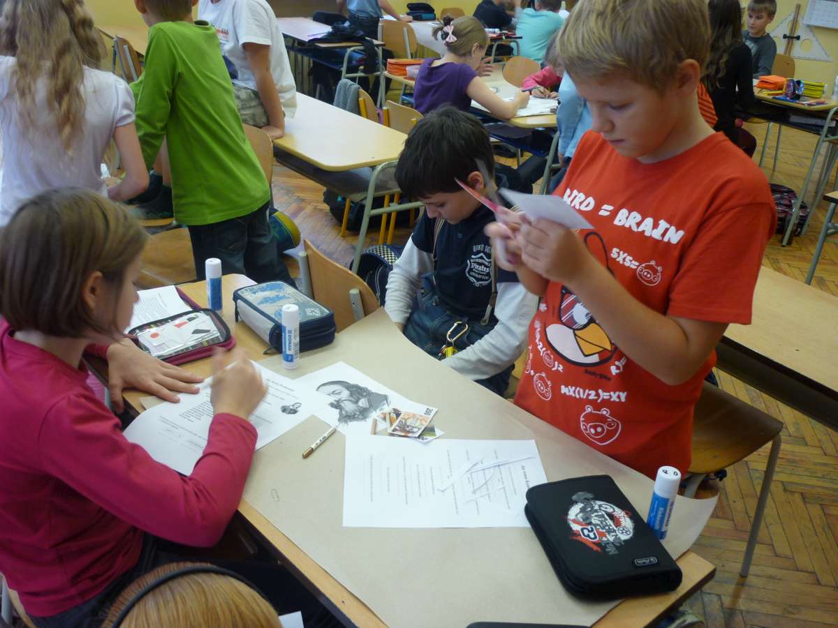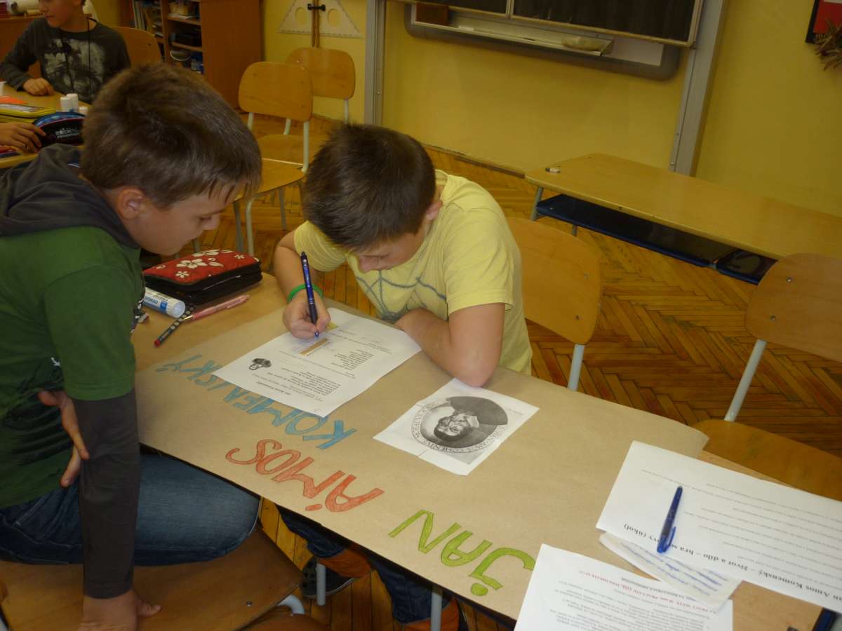 Ve středu 9. října jsme se ve skupinách pokoušeli dozvědět něco o životě významného českého pedagoga J.A. Komenského. Skupiny zapisovaly a lepily důležité informace na plakát a jejich úkolem pak také bylo život a dílo J.A.K. odprezentovat.